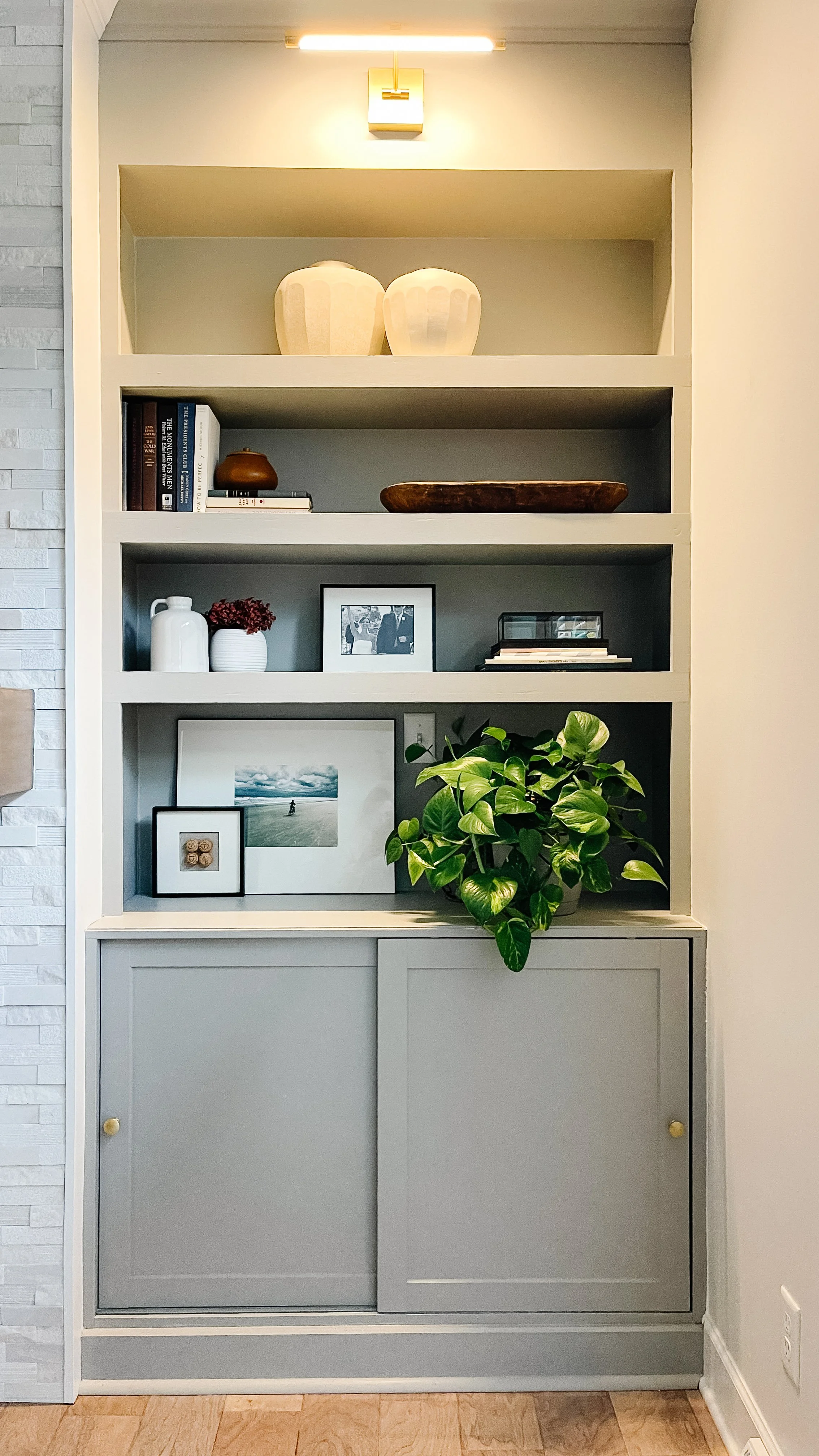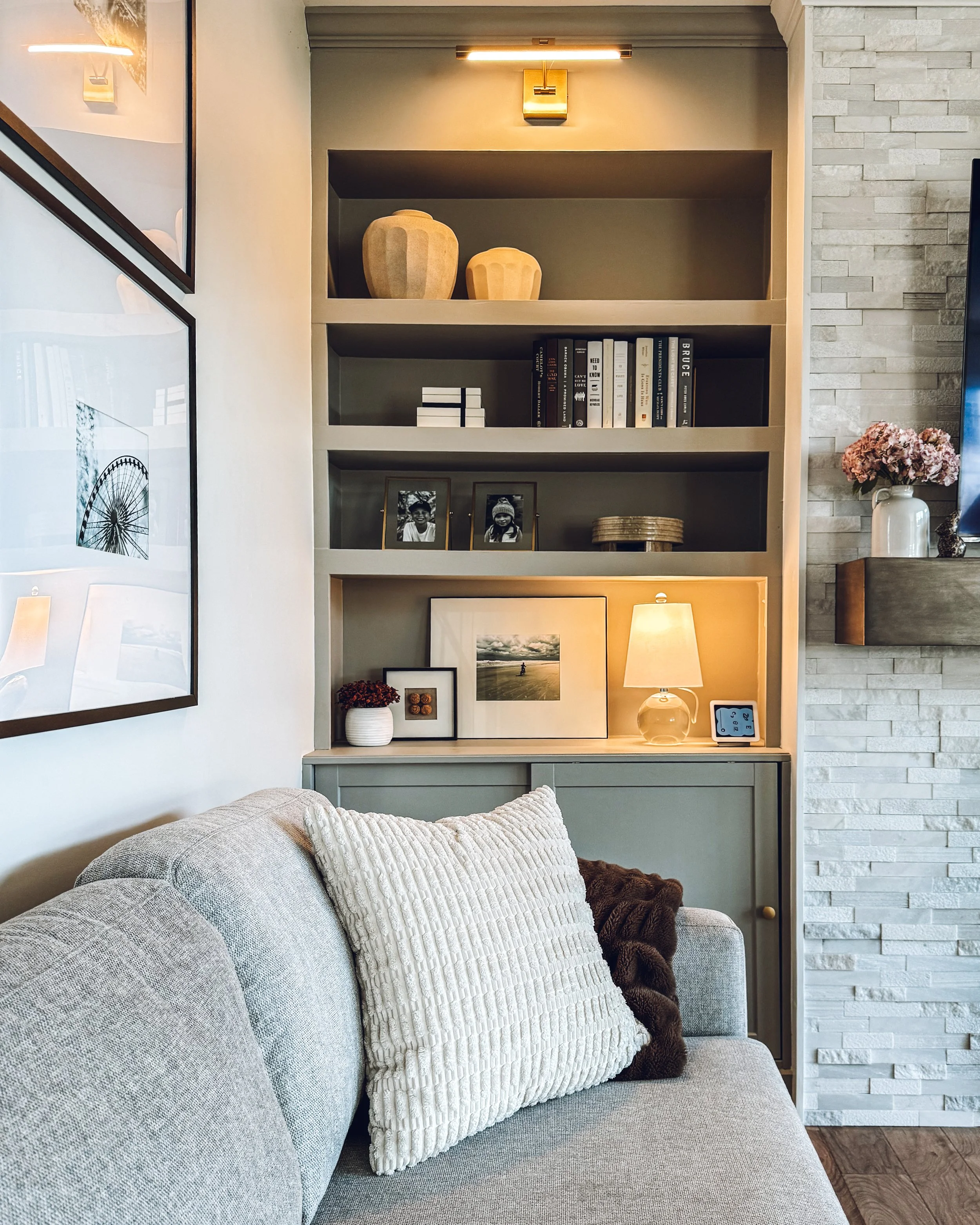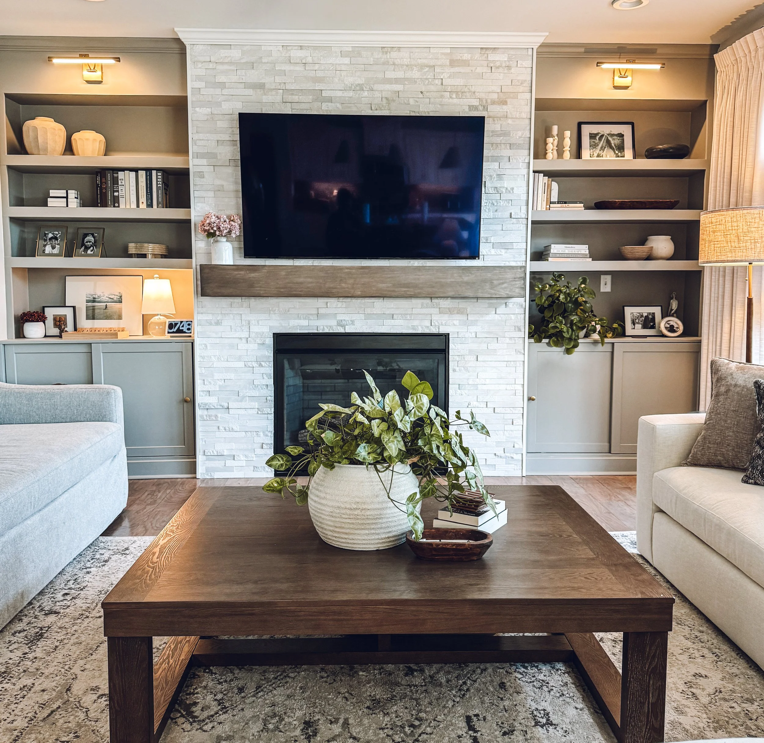Our living room makeover was all about creating a space that felt lighter, more functional, and intentionally designed. We added custom built-in shelves to frame the room and provide both storage and display space, giving the walls purpose and personality. The fireplace got a fresh new front—updated with clean lines and timeless materials—to serve as a more modern, understated focal point. The result is a streamlined, airy look that feels warm, inviting, and perfectly tailored to the way our family lives.