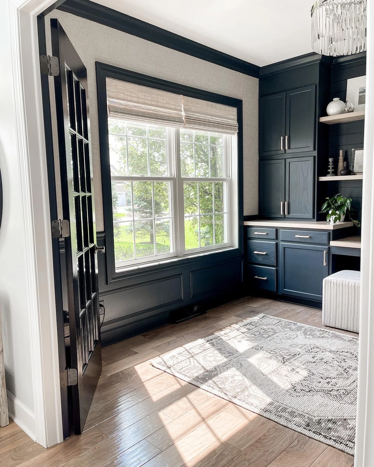 We added cabinetry to provide smart, streamlined storage and keep the space organized without sacrificing aesthetics. Rich, darker paint colors were chosen to create a sense of depth and sophistication, giving the room a grounded, intentional feel. The result is a workspace that’s equal parts practical and polished—designed to inspire productivity while still feeling like home.